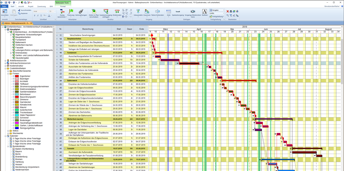 Powerproject bietet Ihnen eine intuitive Handhabung durch konsequente Analogie zur Microsoft Bedienphilosophie. Sie erstellen Vorgänge, Summenvorgänge und Meilensteine direkt im Balkenplan (Gantt-Chart), wo diese ebenfalls verändert und verschoben werden können. Vorgangsabfolgen lassen sich durch automatische Erstellung oder per Hand festlegen.